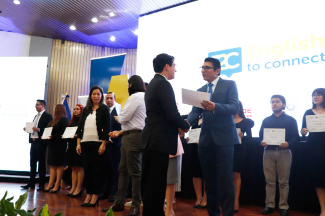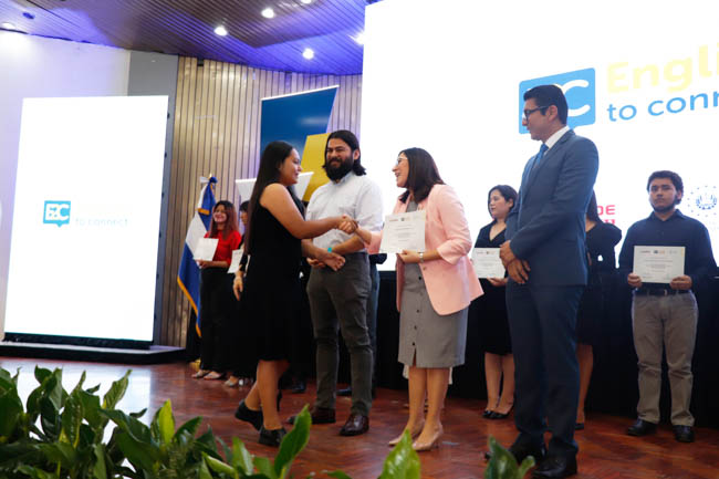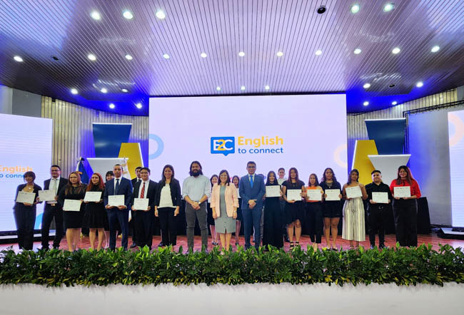 El Ministerio de Economía, junto con su socio estratégico ITCA-FEPADE, realizaron una feria de empleo dirigida a 1,168 participantes de la tercera edición del programa English to Connect (E2C), quienes recibieron su diploma ese mismo día.
