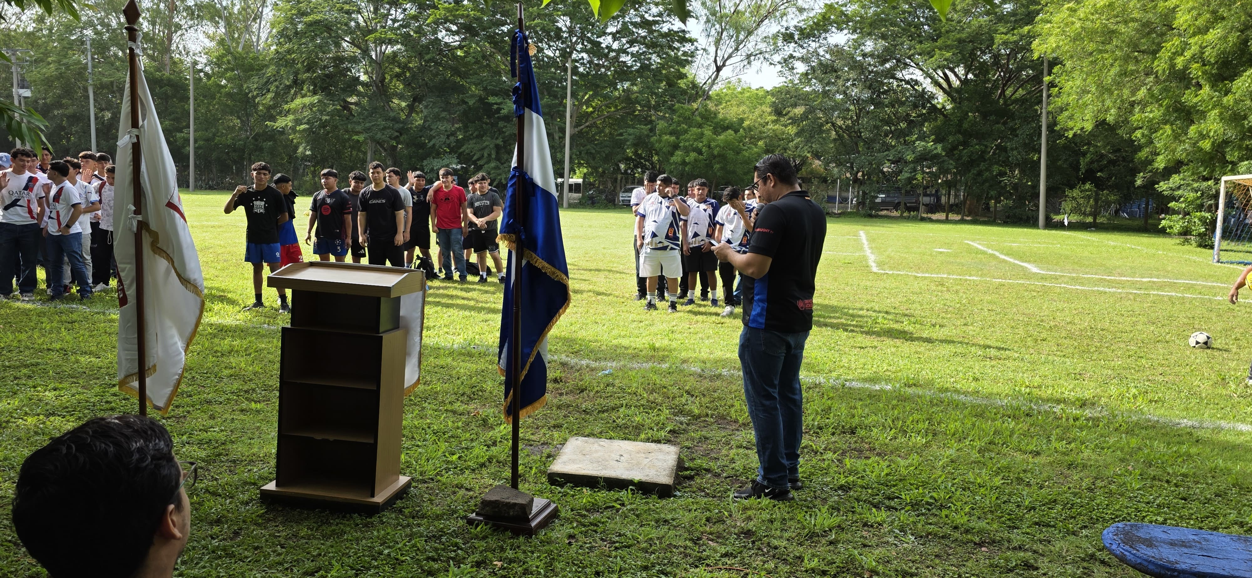 La comunidad educativa se reunió en un acto cívico por los 204 años de independencia de El Salvador, que incluyó la entonación del Himno Nacional, las palabras del Director Lic. Mario Vásquez, la juramentación de deportistas a cargo del Ing. Roberto Rivera y el saque de honor realizado por la Inga. Jacqueline Romero.