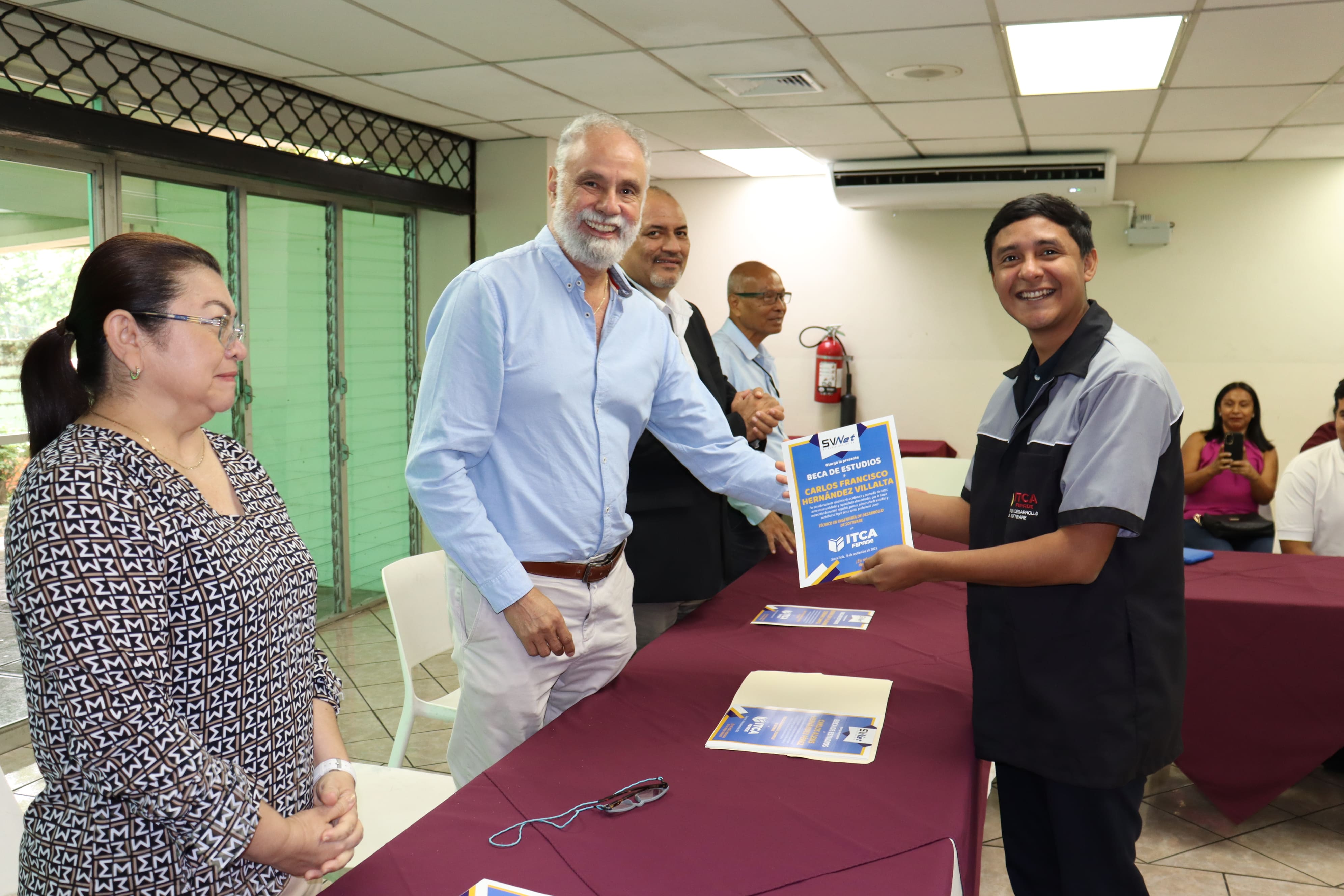Este día, el Ing. Rafel (Lito) Ibarra, Presidente de SVNet y Vicepresidente de la Junta Directiva de ITCA-FEPADE, hizo entrega de 16 becas de estudio en carreras técnicas a jóvenes de primero y segundo año, como parte de la proyección social de SVNet.