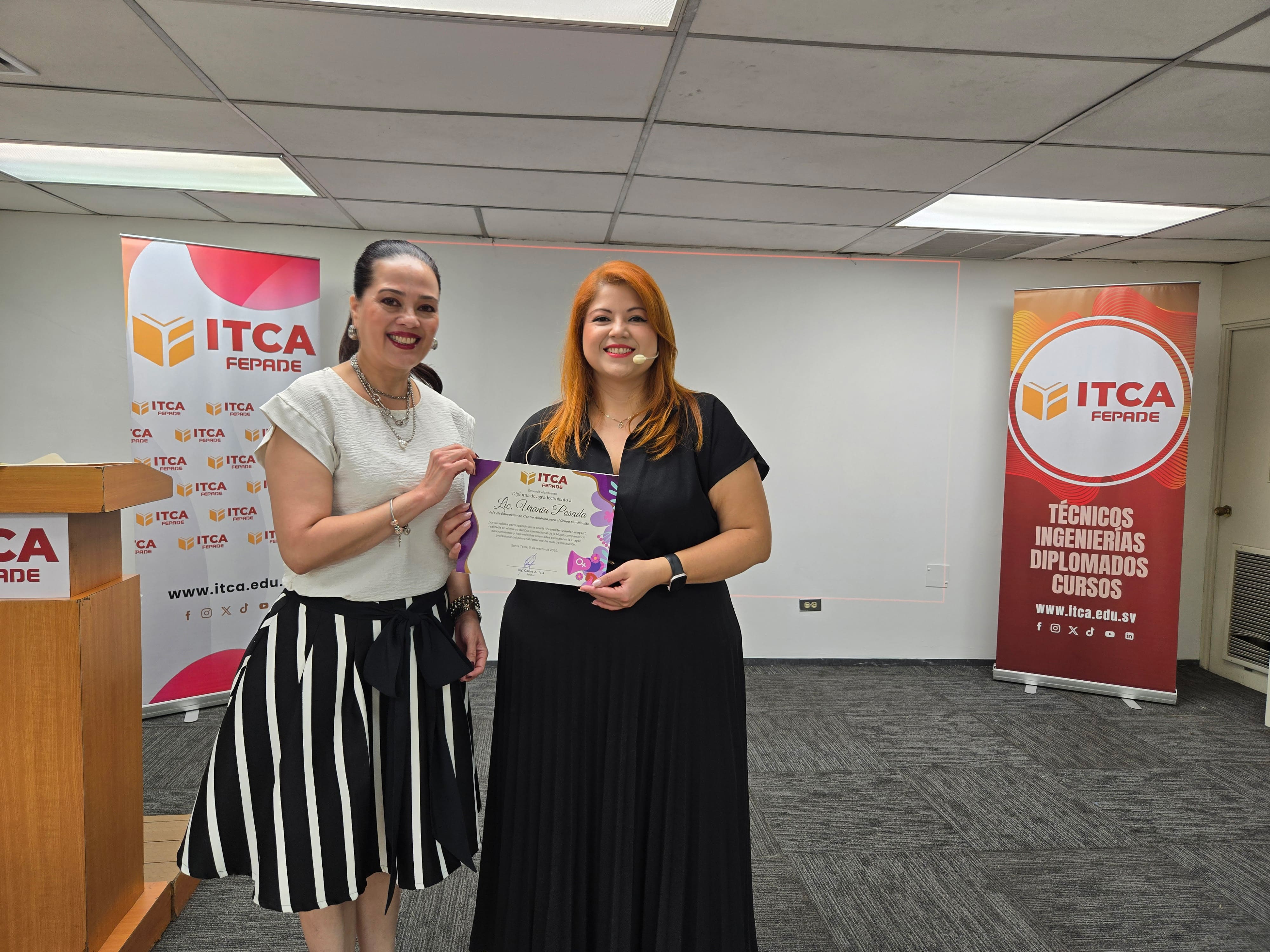 De forma simultánea en los cinco campus de ITCA-FEPADE, el 6 de marzo, colaboradoras participaron en la charla “Proyecta tu mejor versión”, impartida por la Lic. Urania Posada, Jefe de Educación de Wella Professionals Centroamérica. La jornada se desarrolló de manera presencial en el campus Santa Tecla y de forma virtual en las sedes regionales, permitiendo la participación de colaboradoras de toda la institución. Durante la actividad se compartieron recomendaciones sobre estilo, cuidado personal y proyección profesional para distintos entornos laborales.
