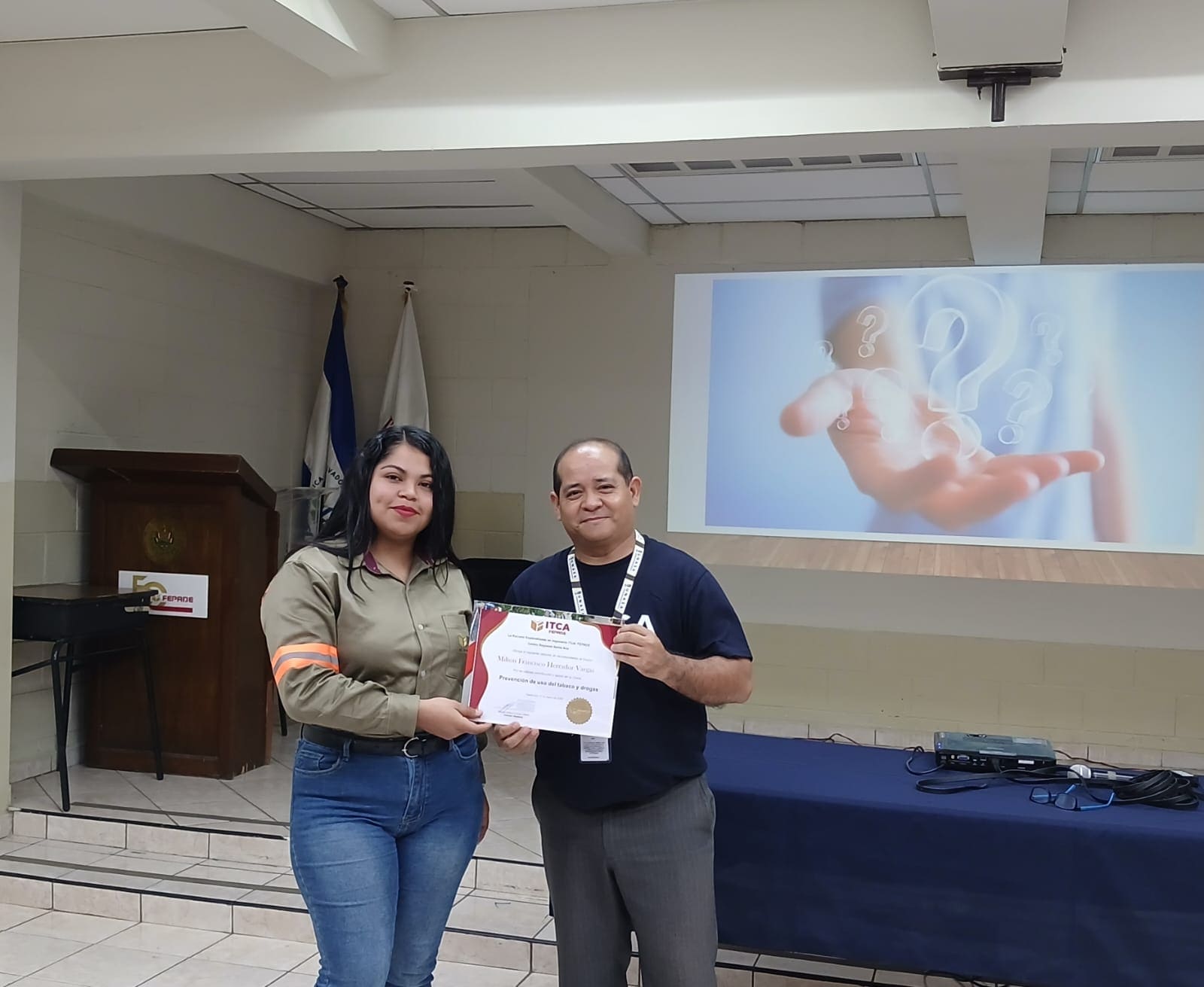 Estudiantes de ITCA-FEPADE Regional Santa Ana participaron en una charla sobre prevención del uso de tabaco y otras drogas, impartida por el Dr. Milton Herrador, de la Universidad Autónoma de Santa Ana.